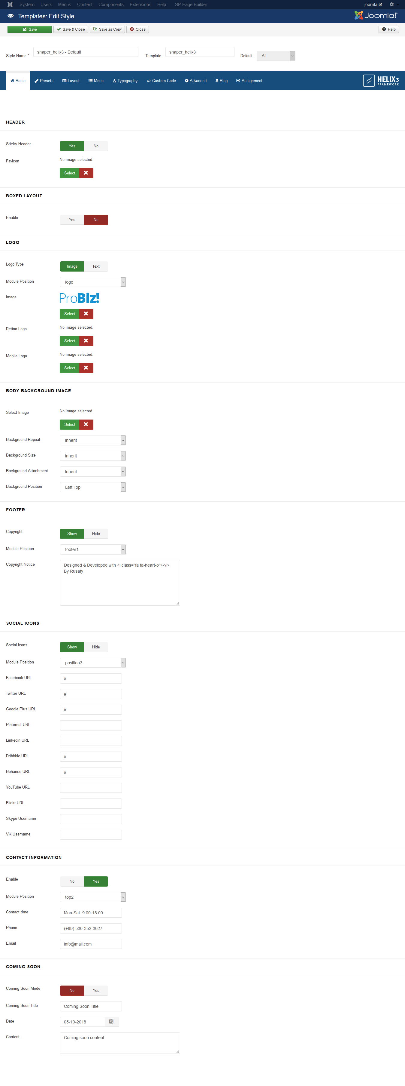 Basic option of template